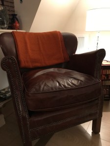 I was pondering this the other day when I was tucked up in my little armchair, the one that’s set aside in my flat almost exclusively for reading (see pic – the real, live, A. L. Brooks reading chair!). I’ve realised this need for quiet extends to my reading time too, and it seems to work exactly the same way as writing time. I can read on a Sunday afternoon when the little girl who lives next door is banging her drum or screeching with delight at what sounds like a tickle fest from one of her parents, and this does not faze me. I can cram myself onto a Tube train on the way to or from work with my trusty Kindle, surrounded by a myriad of conversations and disgruntlement, and never once feel myself drawn away from the story before me.